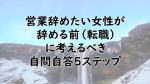 営業辞めたい女性が辞める(転職)前に考えるべき自問自答5ステップ